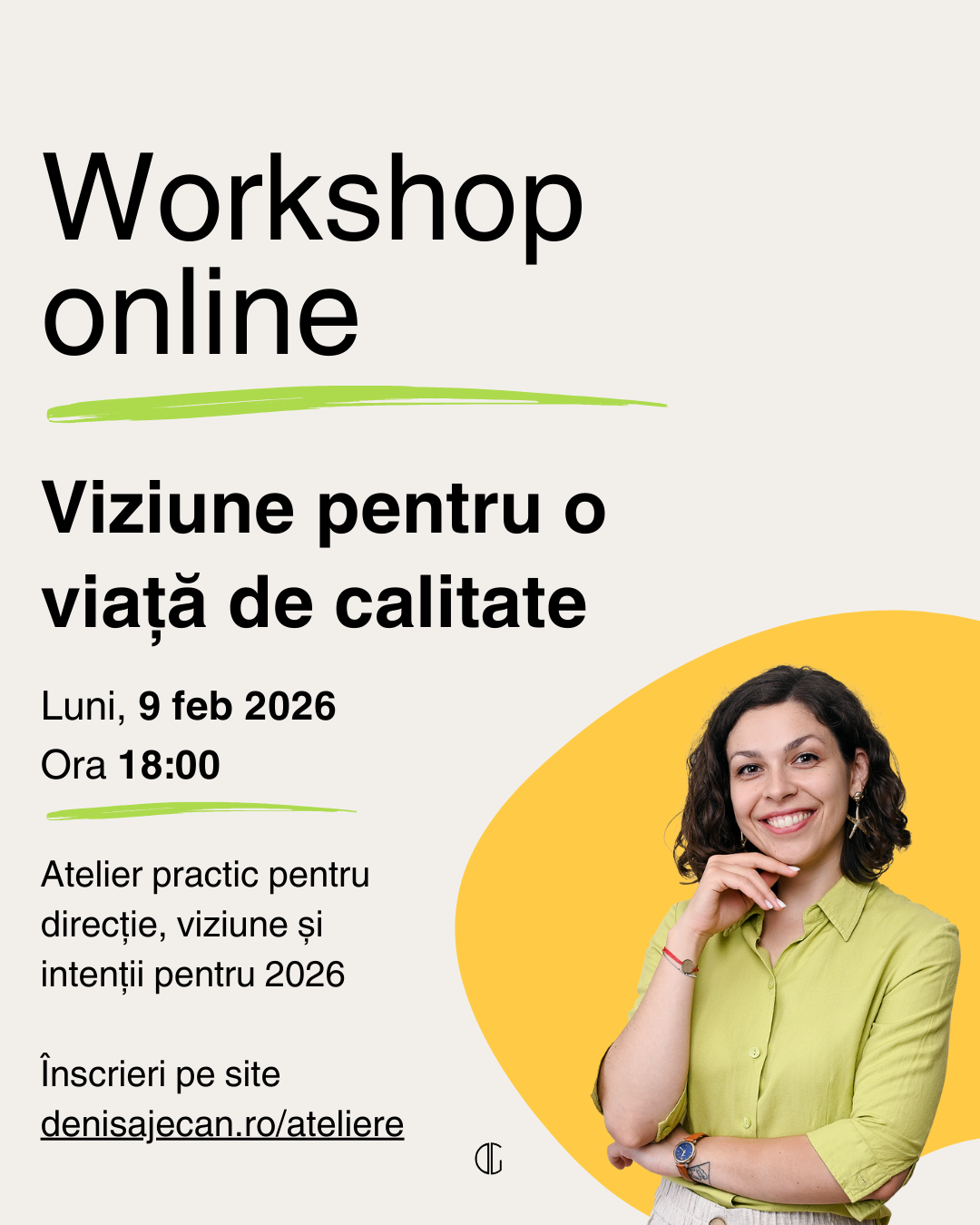 Material video înregistrat + fișa de lucru practică, aferent atelierului despre Viziune pentru o viață de calitate și planuri pentru 2026.